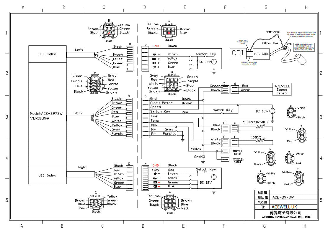 Acewell ACE-3973 Car Speedometer With Battery Symbol